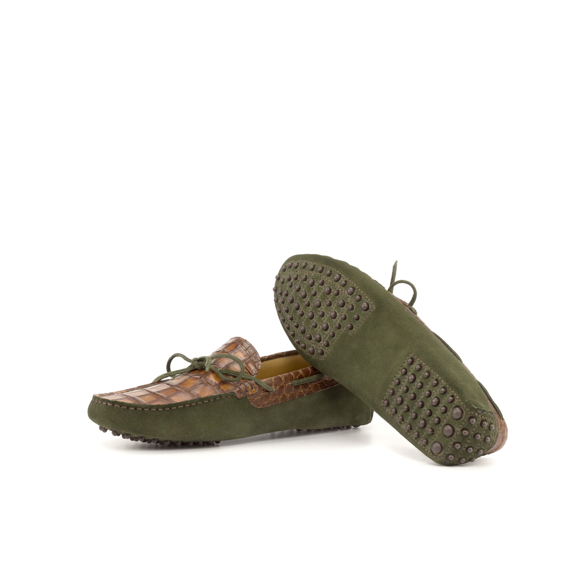 2. The Bi-Material Driving Loafer: Suede & Painted Crocodile